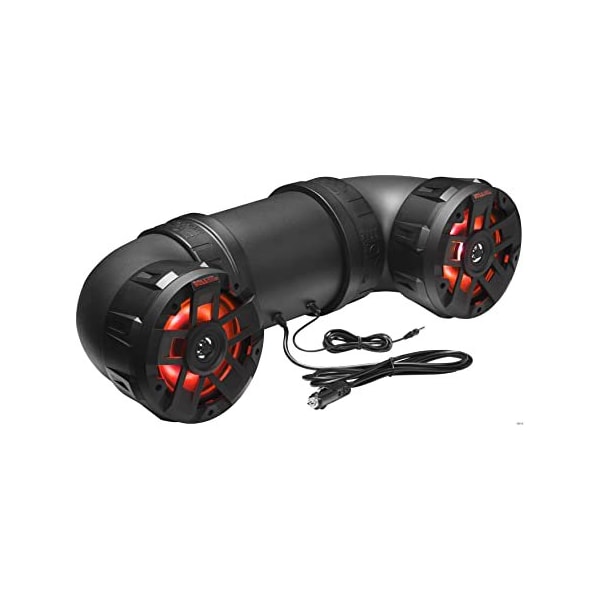 BOSS Audio's ATV65BRGB All-Terrain Sound System is ideal for ATVs, UTVs, side-by-sides, and tailgating! The fully-marinized system features 6.5 marine speakers, high performance tweeters, a 450 Watt built-in Class D amplifier, and RGB LED lighting and wireless control. Bluetooth-ready, your smartphone or MP3 player is your controller! Frequency Response 45Hz - 22kHz.