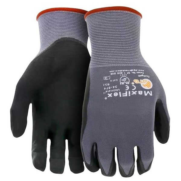 Coated Gloves, Nitrile, Black/Gray, M