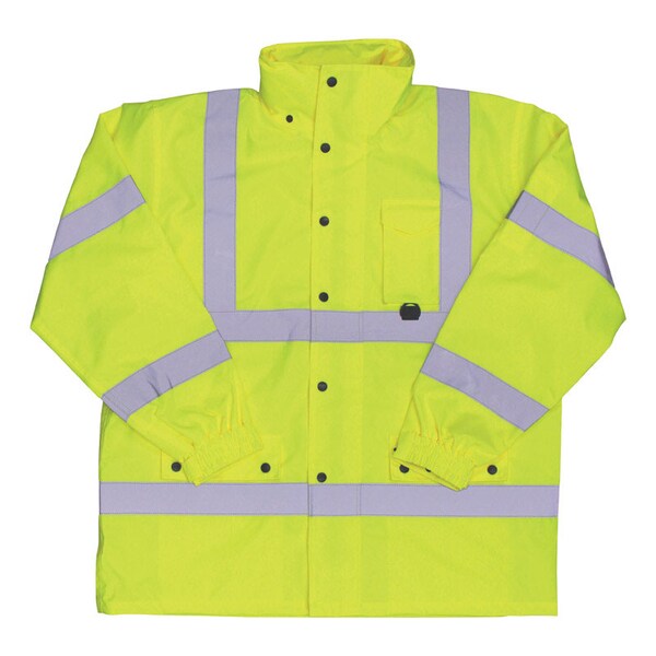 Hi-Vis Rain Jacket, Polyester, Hi-Vis Yellow, 2XL