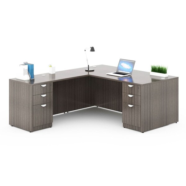 BOSS Office Products 71 Inch Executive L-Shape Corner Desk with Dual File Storage Pedestals, Driftwood. Collection Contains:N101-DW - Desk; N145-DW - Reversible return; N166-DW (2) - B/B/F Pedestal