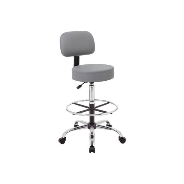 Boss Caressoft Medical-Drafting Stool with Backrest - Vinyl - Gray