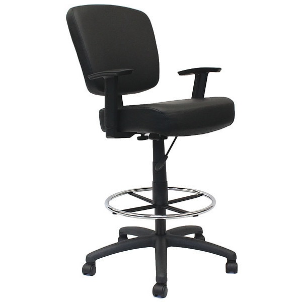 Drafting Chair, Adjustable Arms Yes, Overall Width 27 in, Overall Depth 27 in, Maximum Seat Height 30 in, Maximum Overall Height 46 1/2 in, Seat Color Black, Frame Color Black, Seat Thickness 5 in, Back Color Black, Seat Depth 19 in, Seat Width 19 1/2 in, Seat Material Vinyl, Back Material Vinyl, Frame Material Nylon, Number of Arms 2, Weight Capacity 300 lb, Tilt Configuration Not Applicable, Style Classification Executive, Minimum Seat Height 26 1/2 in, Notional Size Standard, Tilting Back No