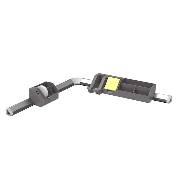 Get ready to do some major office organization with this 12-piece Konnect desktop organizer and cable management kit. Coming with three cord management rails that hide wires and docks accessories, this kit also includes a short and a wide storage bin. Holding pens, tacks, staples and more, they each come with dividers and lids to conceal messy clutter. The tape dispenser is slim and comes with office tape so you're ready to work.
