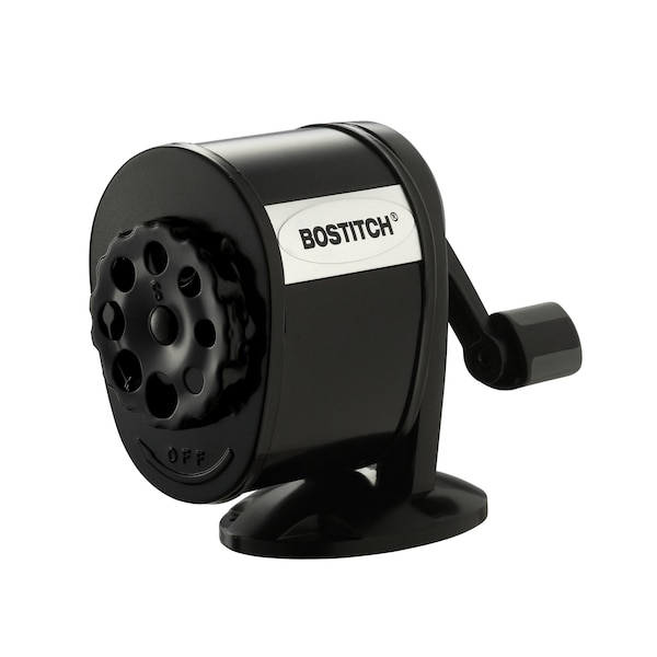 This Bostitch manual pencil sharpener is a fresh take on a classic! Each unit features an oversized crank knob making it easy for kids to grip and use. What makes this sharpener really special is its replaceable cutter. If the cutter ever becomes dull, just swap it out! Don't throw out the whole unit. We're all about saving time and money. Plus, our HHC2 dual cutter technology extends the life of cutter by 6x.