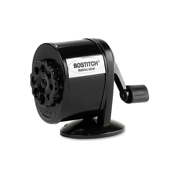 Bostitch 8-hole manual pencil sharpener antimicrobial protected, manual pencil sharpener features eight dial openings for multiple pencil sizes. Extra-quiet, dual 12-blade cutters keep points sharp. Hhc2 replaceable, dual cutter allows six times longer life for the product. Tip saver, auto-stop technology prevents oversharpening so it extends your pencils' life. Pencil sharpener offers a large shavings receptacle and sturdy all-metal construction. Oversized ergonomic grip is easy for kids to use. Mount vertically or horizontally with included clamp and screws.