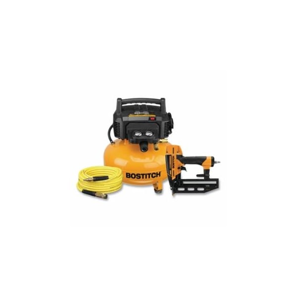 Nailer and Compressor Kit, 16 ga Nailer, 6 gal Compressor, 50 ft L Rubber Hose