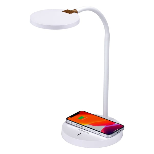Sleek design meets functionality with the Qi Wireless Charging LED Desk Lamp from Bostitch. Charge your phone without any messy wires with wireless charging built into the lamp’s base and keep your phone within reach to never miss a phone call. With a minimalistic design, this white desk lamp can dim to the ideal lighting level for you.