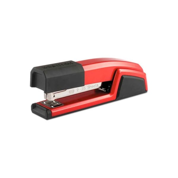 Stanley bostitch antimicrobial full strip metal stapler, 25-sheet capacity, red from its striking silhouette to its infusion of features, the epictm stapler is a high performance, eye-catching stapler. Its tough structured design is complemented with refined sleek curves. Its high quality solid die cast construction delivers precision performance anf the added rubber cap and base provide a soft grip for enhanced stapling comfort. With its versatile form, the epictm can stand vertically or lay flat to complement any desk. Our innovative no-jamtm technology eliminates frustrating staple jams delivering smooth stapling of up to 25 sheets. Cleverly, integrated in the base is a staplestoretm compartment that holds two strips of staples, keeping extra staples close at hand at all times. Conveniently, the epictm can be effortlessly opened 180 degrees for tacking or craft applications. It is antimicrobial protected and prepared with a non-skid base for stability and desktop protection. Stapler type: full strip desktop; staple capacity: full strip (210 staples); size of staple used: 1/4"; type of staple used: standard. this product arrives to most customers in 2-3 business days.