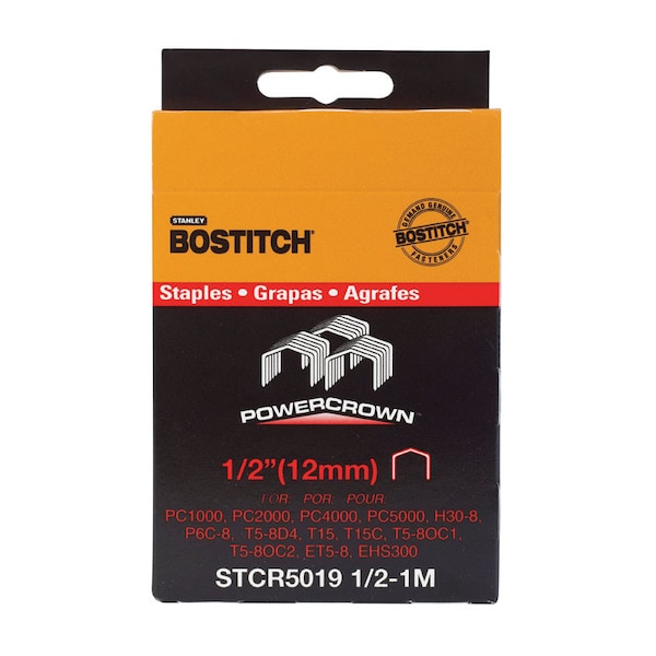Spring crown design puts staple legs under tension for superior driving power. Use in Bo stitch tackers model No. T15 T15C ET5-8 T5-8D4 EHS300 H30-8 EHS50 PC1000 and AC4000.
