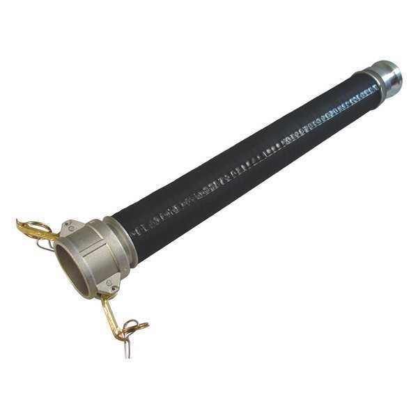 Material Hose, Hose Inside Dia. 4 in, Hose Length 20 ft, Hose Tube Material Rubber, Hose Cover Material SBR, Hose Color Black, Max. Working Pressure @ 70 F 75 psi, Safety Factor 4:1, Temp. Range -40 Degrees to 158 Degrees F, Hose Configuration Coupled Assembly, Hose Fitting A Material Aluminum, Hose Fitting B Material Aluminum, Hose Fitting A Type Cam and Groove C, Hose Fitting B Type Cam and Groove E, Hose Fitting A Size 4 in, Hose Fitting B Size 4 in