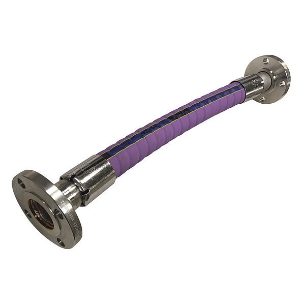Chemical Hose Assembly, Hose Inside Dia. 2 in, Hose Outside Dia. 2 5/8 in, Hose Length 5 ft, Hose Tube Material EPDM, Hose Cover Material EPDM, Hose Reinforcement Type Helix, Hose Reinforcement Material 2ply fiber, Hose Color Purple, Burst Pressure 1,200 psi, Max. Working Pressure @ 70 F 150 psi, Safety Factor 4:1, Temp. Range -40 Degrees to 250 Degrees F, Standards FDA, Bend Radius 8 in, Hose Configuration Coupled Assembly, Hose Fitting A Size 2 in, Hose Fitting B Size 2 in