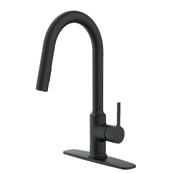 Boston Harbor Pull-Down Kitchen Faucet features 1.8 gpm, 9.19 in spout reach, and single lever faucet handle. The 360 deg swivel spring spout has a flexible supply line. Optional deck plate included.