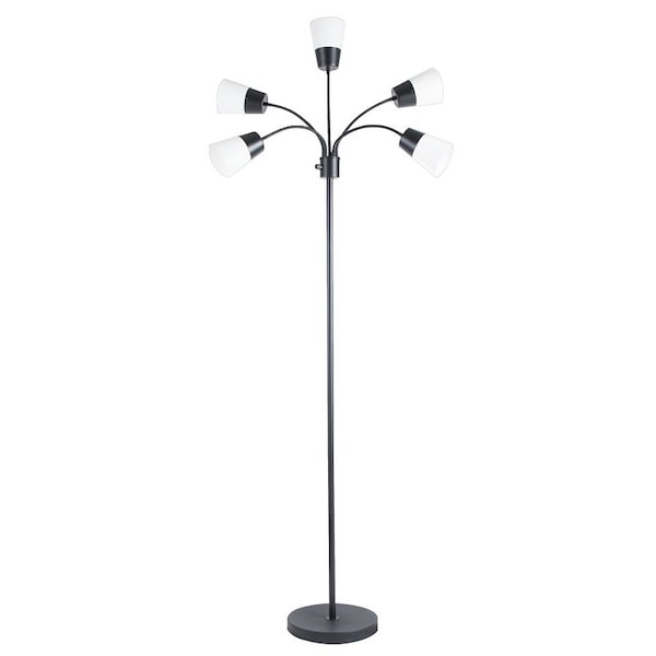 LED Floor Lamp, 5 Heads, Black Finish