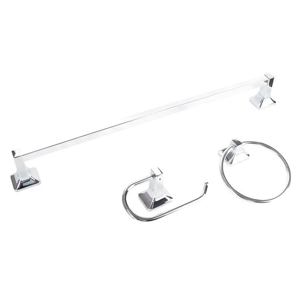 Manhattan Bath Hardware Set, Aluminum/Steel/Zinc, Chrome, 3-Piece, For: Bathroom