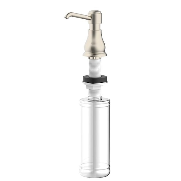 Refill from the top by removing soap dispenser pump head and pour in soap from the top. Soap bottle holds 11 oz of liquid dish soap, hand soap, liquid detergent or hand lotion. Press to dispense liquid. Brushed nickel finish.