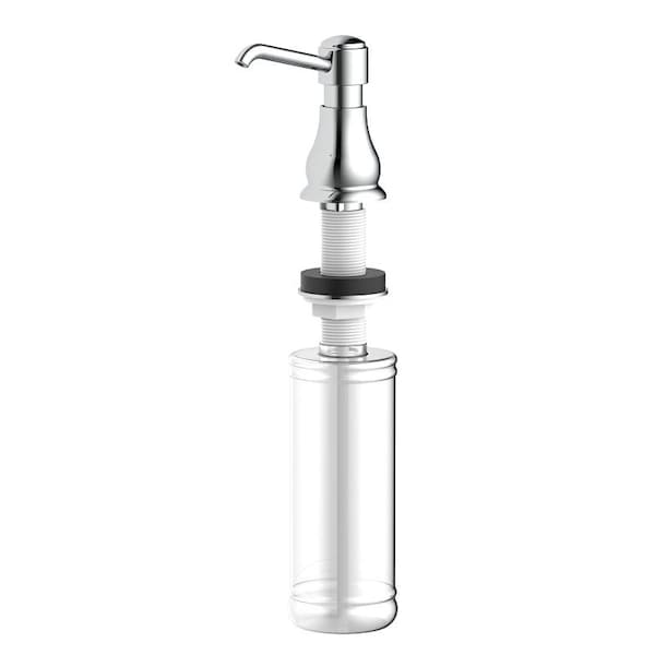 Refill from the top by removing soap dispenser pump head and pour in soap from the top. Soap bottle holds 11 oz of liquid dish soap, hand soap, liquid detergent or hand lotion. Press to dispense liquid. Clear plastic bottle. Chrome finish.