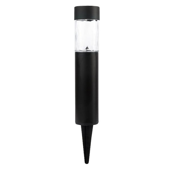 Solar Bollard Light, Swirl Lens, Plastic, Black