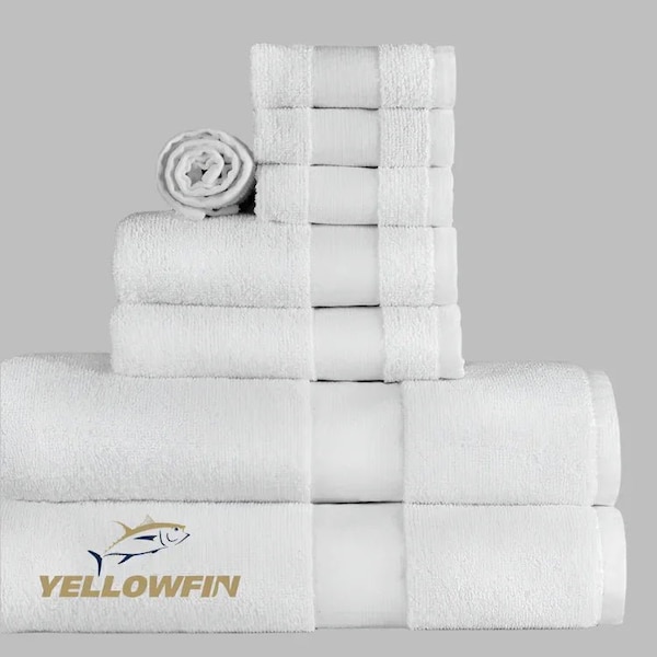 Yellowfin Towels by Boston Textile are a perfect blend of softness, quality, and durability. These luxurious towels are made from an 86% Cotton/14% Polyester blend with a long staple ring-spun terry pile, matched with a sturdy cam border. The towels are finished in an advanced, environmentally friendly, continuous bleach and dye system, resulting in optimal whiteness and colorfast dyeing. They feature hydrophilic softeners to increase absorbency, continuously tumbled dried for an incredibly soft hand, and durable tucked selvages.