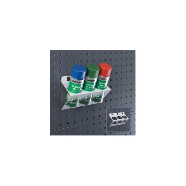 BOTT 14021055.16 3 POSITION AEROSOL CAN HOLDER FOR PERFO PANELS, 9" WIDE KEEP TOOLS, PARTS AND SUPPLIES ORGANIZED AND WITHIN REACH. THE ROBUST BOTT 3 POSITION AEROSOL CAN HOLDER LOCKS ONTO THE TOOLBOARD AND WILL NOT COME OUT WHEN CANS ARE REMOVED. PERFO LOCKING TABS NECESSARY FOR SECURING ACCESSORIES TO THE TOOLBOARD ARE INCLUDED AND ARE EASILY SECURED OR REMOVED USING FLAT NOSED PLIERS - ALLOWING THE ACCESSORY TO BE REPOSITIONED AT WILL. FOR USE WITH STEEL TOOLBOARDS. DURABLE TEXTURED EPOXY POWDER COATED FINISH. SHOWN IN PICTURE: BOTT 3 POSITION AEROSOL CAN HOLDER ON TOOLBOARD, TOOLBOARD SOLD SEPARATELY.