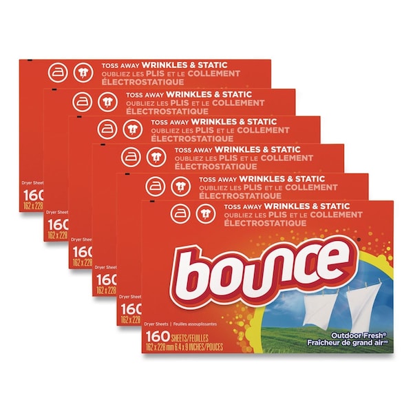 With Bounce Fabric Softener Sheets, static cling doesn't have to be a thing. These dryer sheets help prevent static build up that occurs in the dryer so you can look and feel your best. America's #1 dryer sheet brand is tough on wrinkles, too. Toss a sheet in the dryer to keep clothes looking their best and reduce wrinkles so your clothes will be ready to wear right away, making you look and feel confident. Bounce dryer sheets don't stop there. From the moment you pull your laundry out of the dryer, they give your clothes a fresh and lasting scent and a noticeably soft feel. Way less static, fewer wrinkles, softer fabrics, and an outdoor fresh scent is that easy. Toss in two Bounce dryer sheets for your average loads to iron less, fight more static, and add more softness and freshness. One will do for small loads, and if you're catching up on laundry and have an extra large load, toss in three! You can also use Bounce dryer sheets around the house. Tuck them in drawers or closets, put them in gym bags and suitcases, or stash them at the bottom of your trashcan to bring that Bounce fresh scent you know and love out of the dryer and into your home.