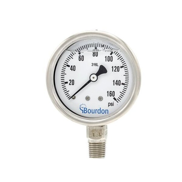2.5 in. DIAL, 0-160 PSI, 1/4 in. NPT LOWER MOUNT, BH1 CRIMPED BEZEL, ALL SS PRESSURE GAUGE
