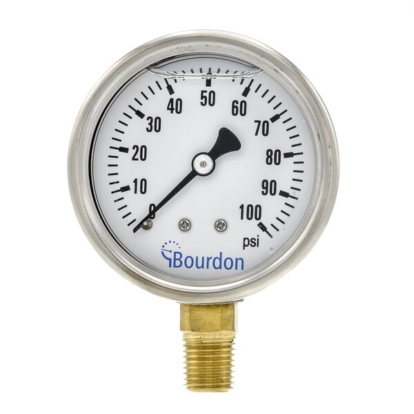 2.5 in. DIAL, 0-100 PSI, 1/4 in. NPT LOWER MOUNT, BH2, SS/BR PRESSURE GAUGE