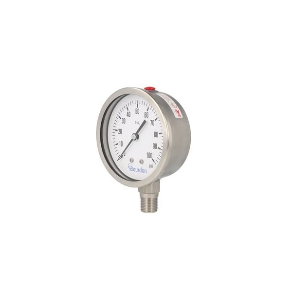 4 in. DIAL, 0-100 PSI, 1/2 in. NPT LOWER MOUNT, CRIMPED BEZEL, ALL SS PRESSURE GAUGE