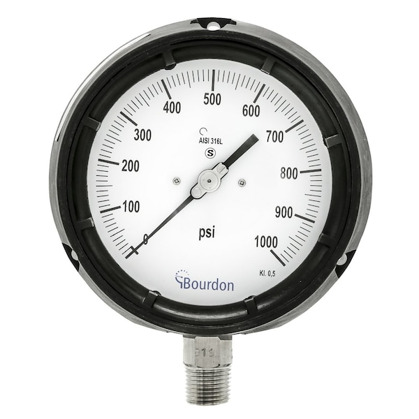 4.5 in. DIAL, 0-1000 PSI, 1/2 in. NPT LOWER MOUNT, DRY, POLYPRO PLEXI GLASS LENS, PRESSURE GAUGE
