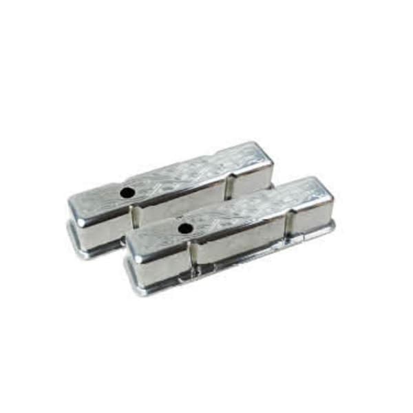 Tall Aluminum Flame Valve Cover with Hole for 1958-1986 SBC, Chrome (Discontinued)