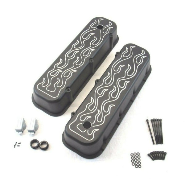 Tall Aluminum Flame Valve Cover with Hole for 1965-1995 BBC 454, Black