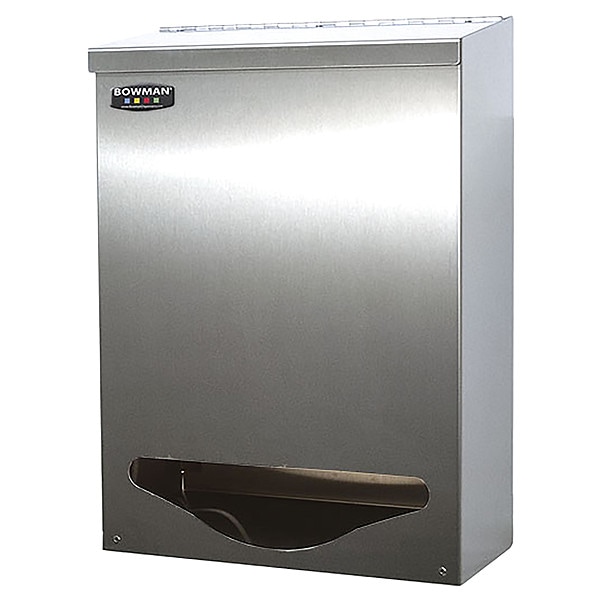 Bulk Dispenser, Overall Height 17 1/16 in, Overall Width 12 3/16 in, Overall Depth 5 3/4 in, Number of Compartments 1, Mounting Style Wall, Dispenses Bouffant Caps, Gloves, Shoe Covers, Material Stainless Steel, Color Silver, Compartment Size 12 in W x 16 in H x 5-13/32 in D, Includes Dispenser