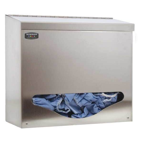 Bulk Dispenser, Overall Height 11 1/8 in, Overall Width 12 3/16 in, Overall Depth 5 3/4 in, Number of Compartments 1, Mounting Style Wall, Dispenses Bouffant Caps, Gloves, Shoe Covers, Material Stainless Steel, Color Silver, Compartment Size 12 in W x 11 in H x 5-13/32 in D, Includes Dispenser