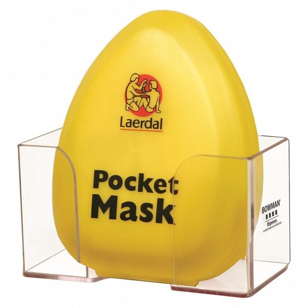 CPR Mask Dispenser, Overall Height 2 7/8 in, Overall Width 5 3/16 in, Overall Depth 2 1/2 in, Number of Compartments 1, Mounting Style Wall, Dispenses CPR Mask Clams, Material Plastic, Color Clear, Compartment Size 5 in W x 6 in H x 2-19/64 in D, Includes Dispenser