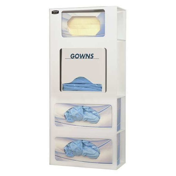 Face Mask Dispenser, Capacity 6 Boxes of Face Masks, Dispenser Style Stack, Dimensions 23 1/2 in H x 10 5/8 in W x 5 in D, Dispensing Method Hinged Top and Bottom Tray, Plastic