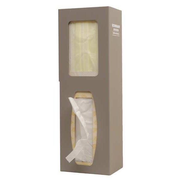 Infection Prevention Station, Overall Height 15 1/8 in, Overall Width 7 3/16 in, Overall Depth 4 5/16 in, Number of Compartments 2, Mounting Style Floor Stand, Dispenses Face Masks, Gloves, Tissues, Material Aluminum, Color Gray, Compartment Size Face Mask 5-5/8 in W x 7-1/16 in H x 4-51/64 in D, Tissue 5-5/8 in W x 10 in H x 4-51/64 in D, Includes Dispenser