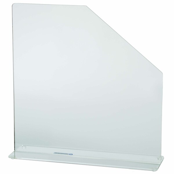 Physical Barrier - Cutaway - Short: This plastic barrier has a wide base to provide stability with attached rubber feet to protect surfaces and reduce slipping. It features a cutaway edge for accessibility to items on the other side. Constructed of Clear Acrylic Plastic.