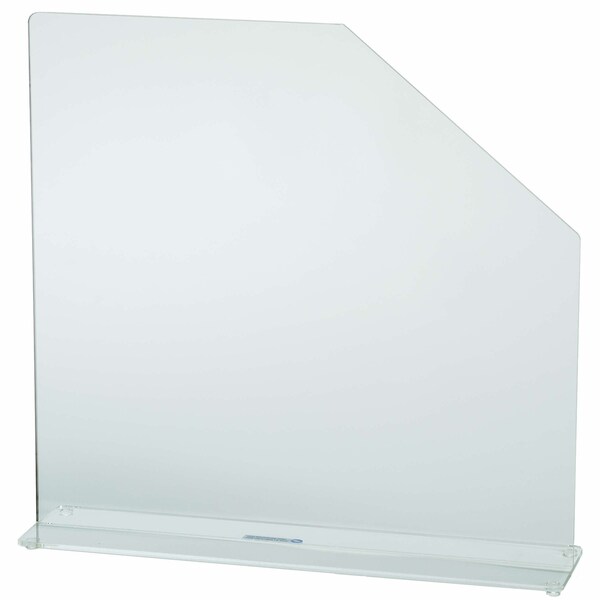 Physical Barrier - Cutaway - Small: This plastic barrier has a wide base to provide stability with attached rubber feet to protect surfaces and reduce slipping. It features a cutaway edge for accessibility to items on the other side. Constructed of Clear Acrylic Plastic.