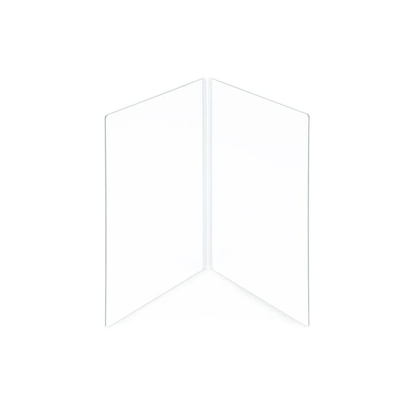 Protective Barrier - Hinged - Small: A flexible hinge bends to create a protective barrier between seated personnel. Multiple barriers can be used to section off areas of a table. It folds flat for convenient storage. Constructed of Clear Polycarbonate Plastic & PVC hinge.