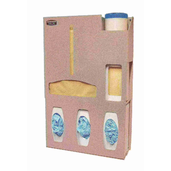 Protective Wear Organizer; Holds flat pack or launderable gowns, three boxes of gloves, one box of earloop style face masks, and one wipe canister; Quartz Beige ABS Plastic,