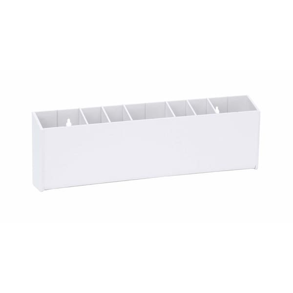 Tool Supply Dispenser Six adjustable dividers provide customizable sized compartments in internal width increments of 163W Excellent for storing commonly misplaced tools and supplies Frees up work surface Keyholes for wall mounting or can sit on a countertop InjectionMolded White ABS Plastic