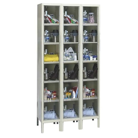 16 Person Clear View Locker, 72inW x 18inD x 78inH, Tan, Assembled