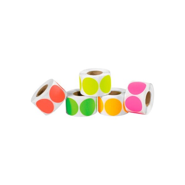 2" Dia. Inventory Circles, 5 Fluorescent Colors, 5 Rolls of 1000 Labels Each