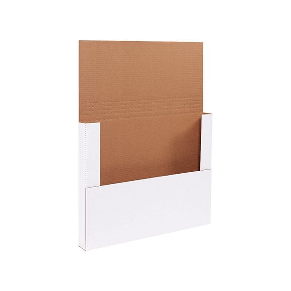 These easy-fold mailers are great for mailing books, catalogs and framed pictures. features: scored at multiple depths for flexibility quickly package items - no carton set up simply place the product in the center, fold in the sides at your desired depth and seal with tape attractive 200#/ect-32, b flute white corrugated construction makes a quality impression sold and shipped in quantities of 50 the dimensions provided are the inside dimensions of the product