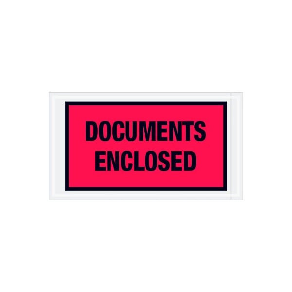 Full Face Envelopes, "Documents Enclosed" Print, 10"L x 5-1/2"W, Red, 1000/Pack