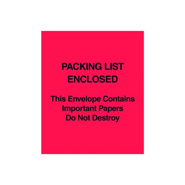 These pressure sensitive envelopes secure and protect documents that are attached to the outside of shipments. pre-printed with "packing list enclosed", "important papers" and "do not destroy" warnings hot melt adhesive backing provides strong adhesion to paper and corrugated products envelopes open along the first dimension 1000 per case