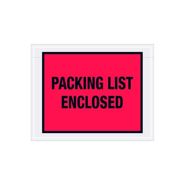 These pressure sensitive packing list envelopes secure and protect documents that are attached to the outside of shipments. full face, colored packing list envelopes are pre-printed with "packing list enclosed" on heavy, 2 mil poly hot melt adhesive backing provides strong adhesion to paper and corrugated products envelopes open along the first dimension