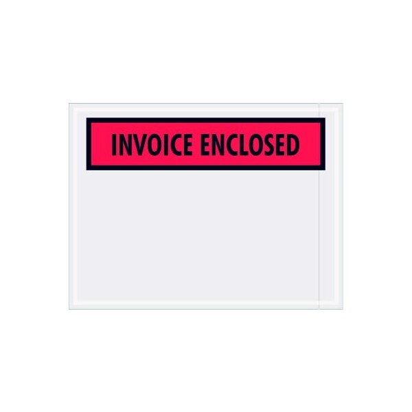 Panel Face Envelopes, "Invoice Enclosed" Print, 6"L x 4-1/2"W, Red, 1000/Pack