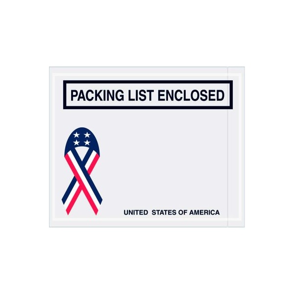 These pressure sensitive packing list envelopes secure and protect documents that are attached to the outside of shipments. pre-printed with patriotic message and/or image on heavy, 2 mil poly hot melt adhesive backing provides strong adhesion to paper and corrugated products envelopes open along the first dimension