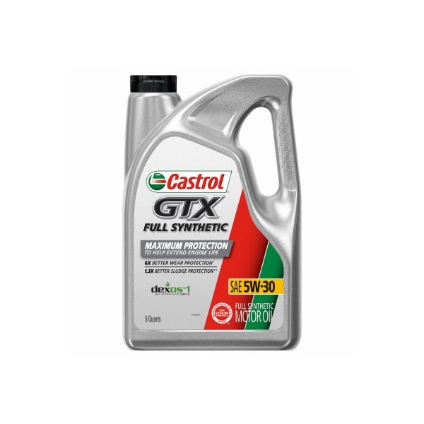5 Quart Castrol GTX 5W-30 full synthetic oil. Hhelps extend engine life with superior wear protection on critical engine parts 6X better wear protection. Superior sludge cleaning and protection against new formation 1.3X better sludge protection. Full synthetic formula provides thermal and oxidation stability. Superior level of protection against viscosity breakdown