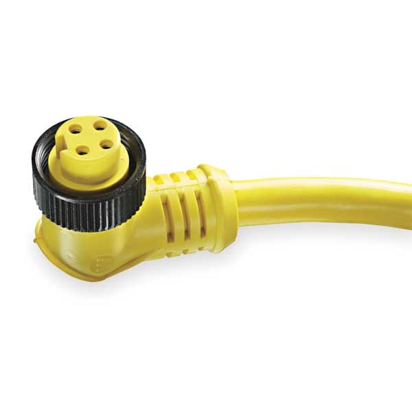 Cordset, End 1 Gender Female, End 1 Thread 7/8 In.-16, End 1 Number of Pins 4, End 1 Mounting Orientation Right Angle, End 1 Connection Type 7/8 in, End 2 Gender Not Applicable, End 2 Thread Not Applicable, End 2 Connection Type Bare Wire, Cable Length 12 ft, Cable Jacket Color Yellow, Cable Jacket Material PVC, Max. Amps 10 A, Wire Size 16 AWG, Maximum Operating Temperature 221 Degrees F, Minimum Operating Temperature -4 Degrees F, IP Rating IP67, IP68, Standards CSA Certified, IEC, UL Listed